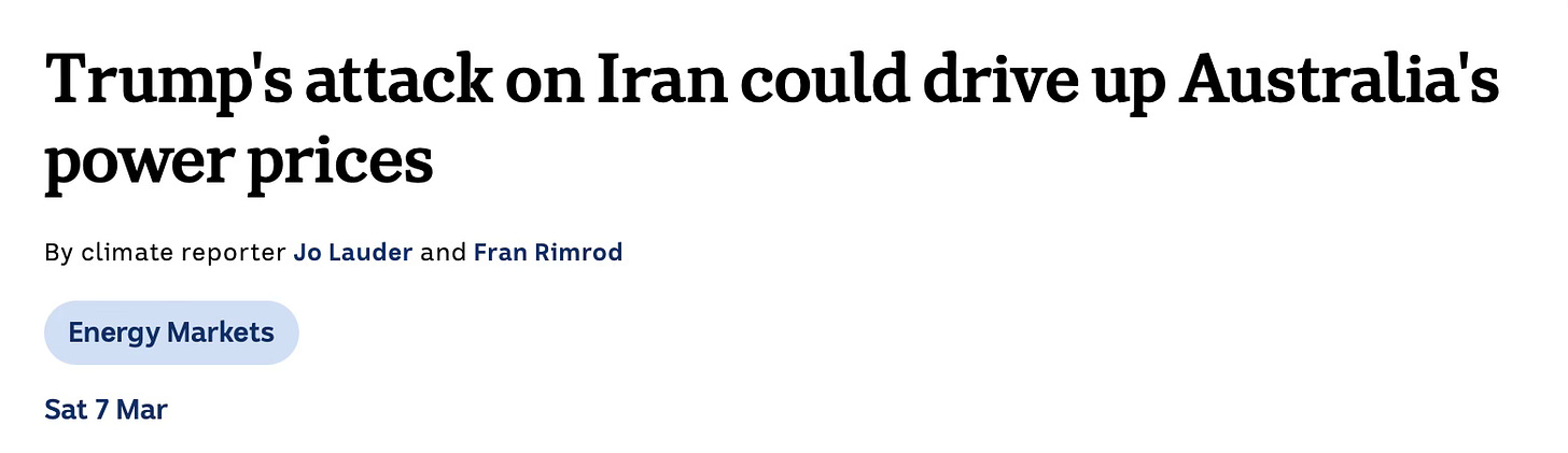 The Australian Broadcasting Corporation published a headline yesterday warning that the cost of energy in Australia “could” go up as a result of the war in the gulf.